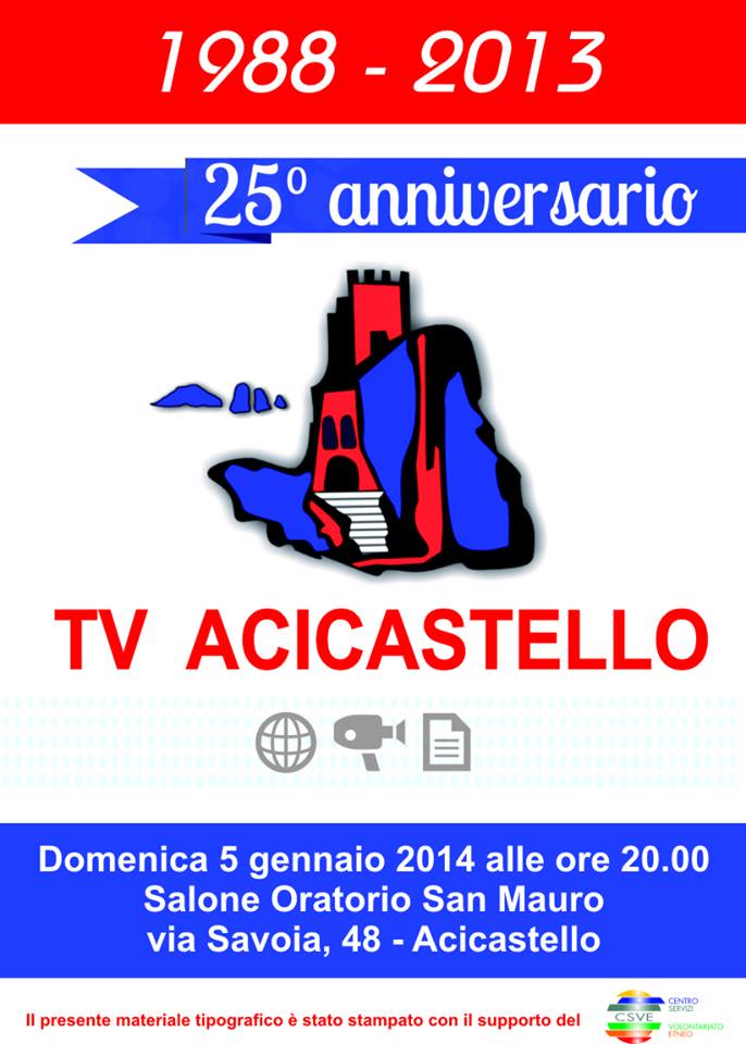 Lo scorso Dicembre 2013 ricorreva il venticinquennale dell'emittente castellese e per questo, infatti, giorno 5 Gennaio 2014 alle ore 20.00, l'intero staff dell'emittente si riunirà nei locali del Salone Oratorio San Mauro in Via Savoia 48 ad Acicastello (CT) per festeggiare con i telespettatori i 25 anni di vita dell'emittente stessa.